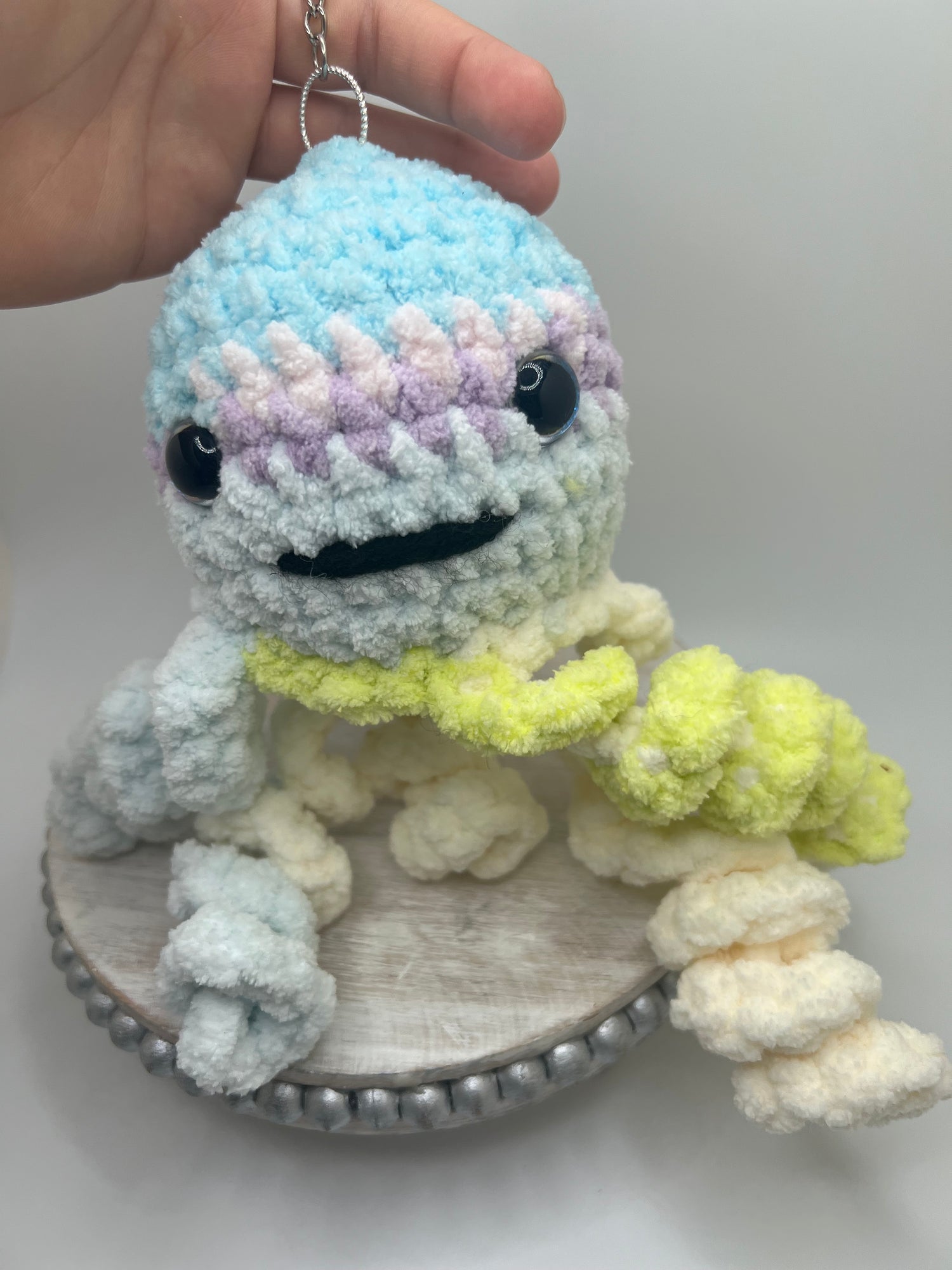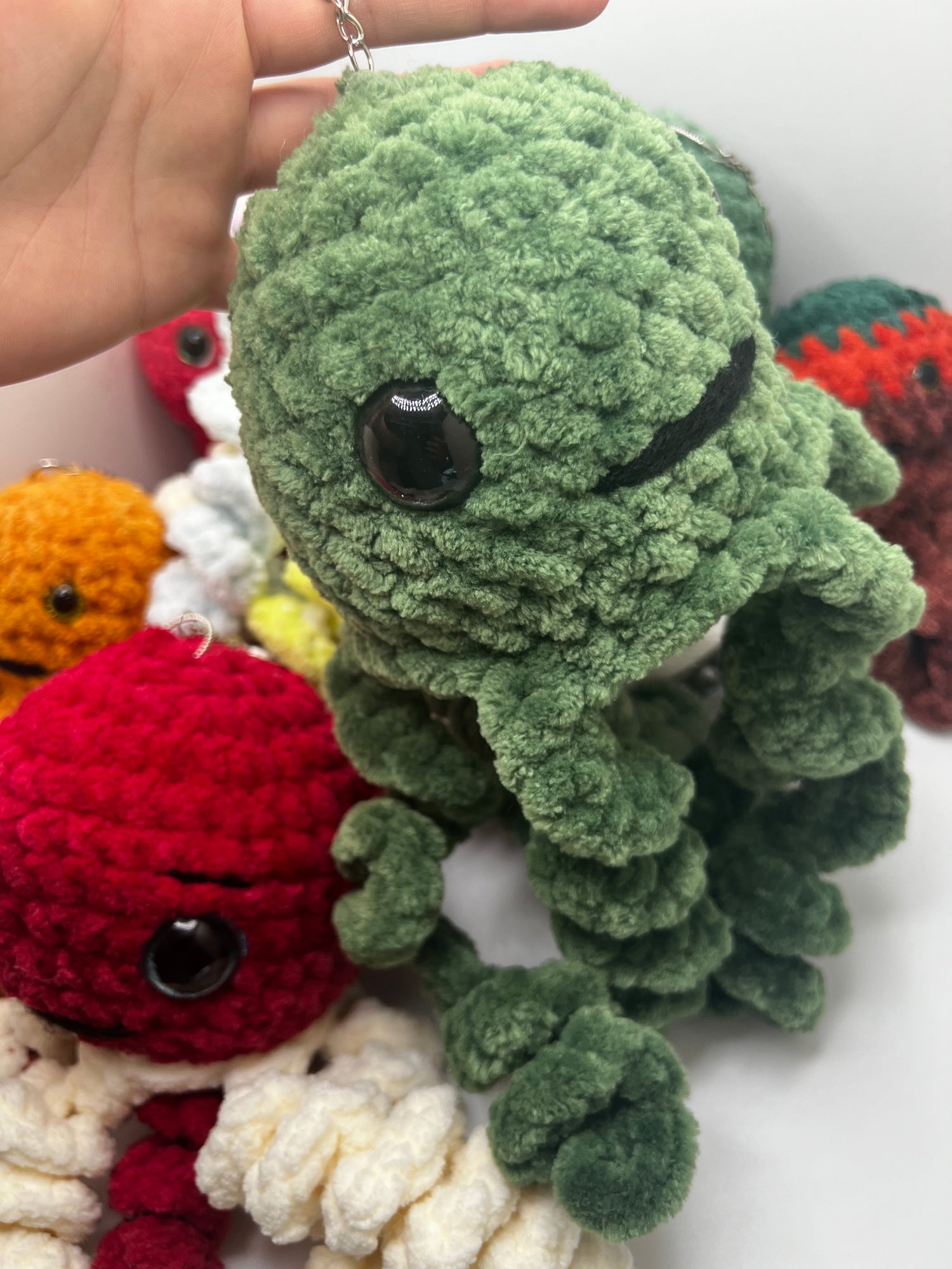Crochet Stuffed cute octopus keychain is handmade with yarn that is soft, natural, and durable. The filling is 100% polyester fiber stuffing 💕