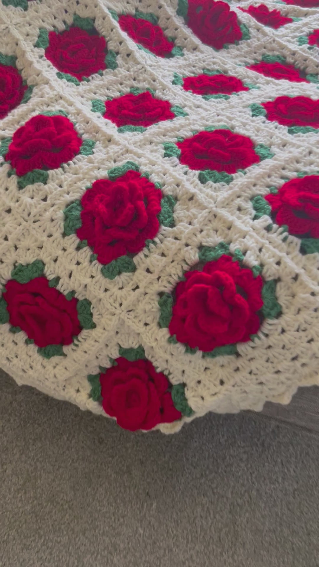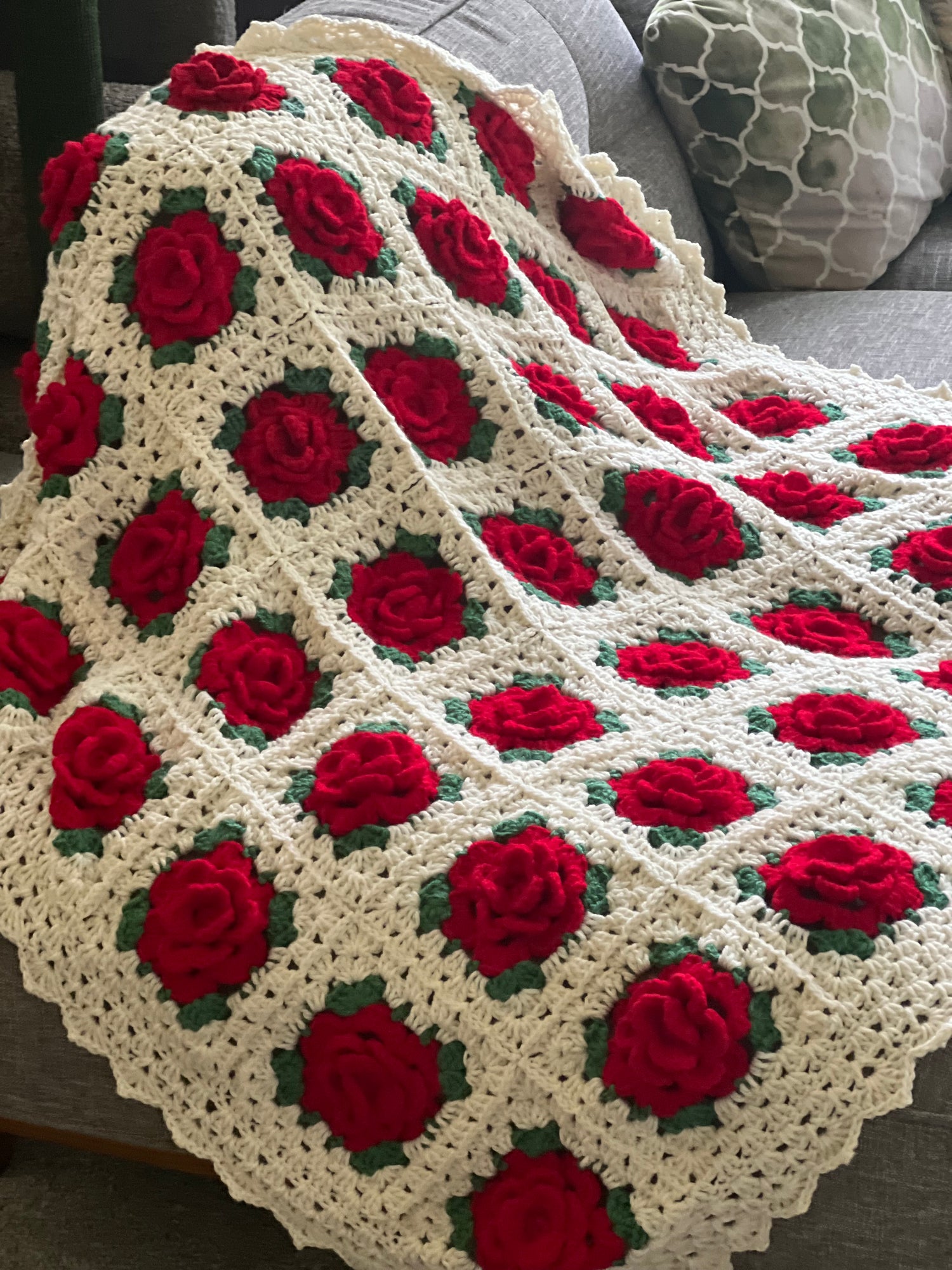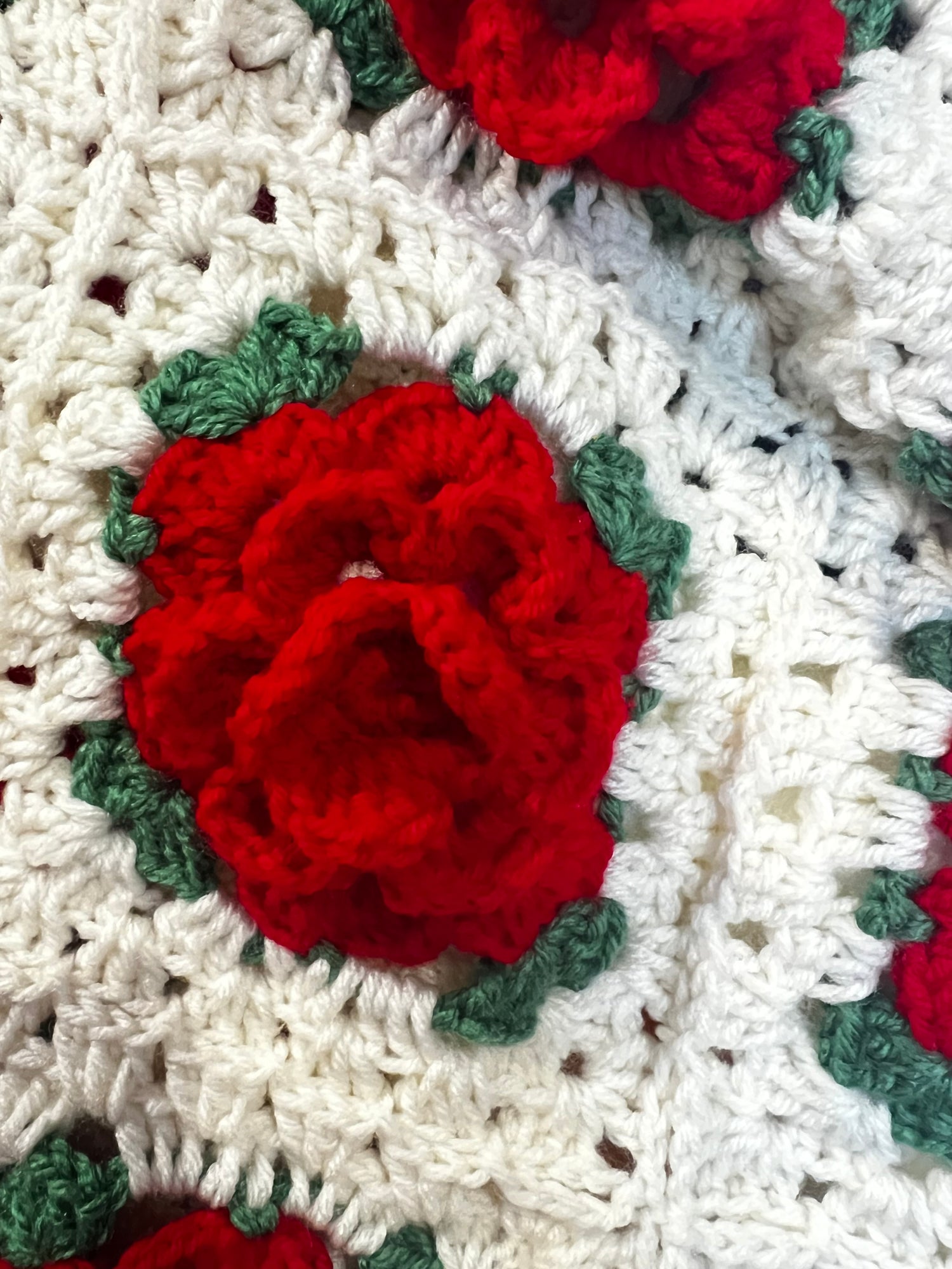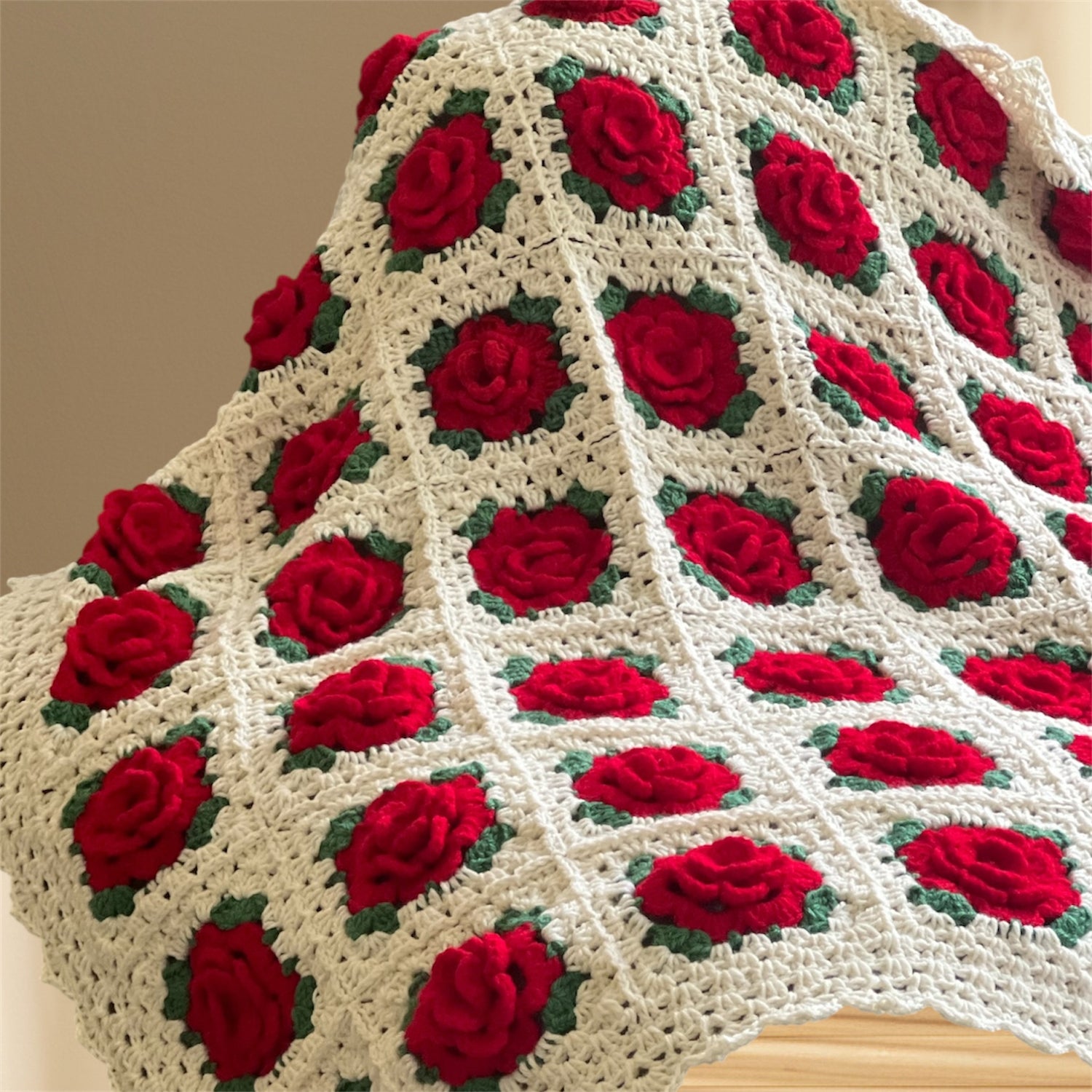 Elegant Handmade Wool 3D Red Flower Blanket - Handmade Cozy Warm