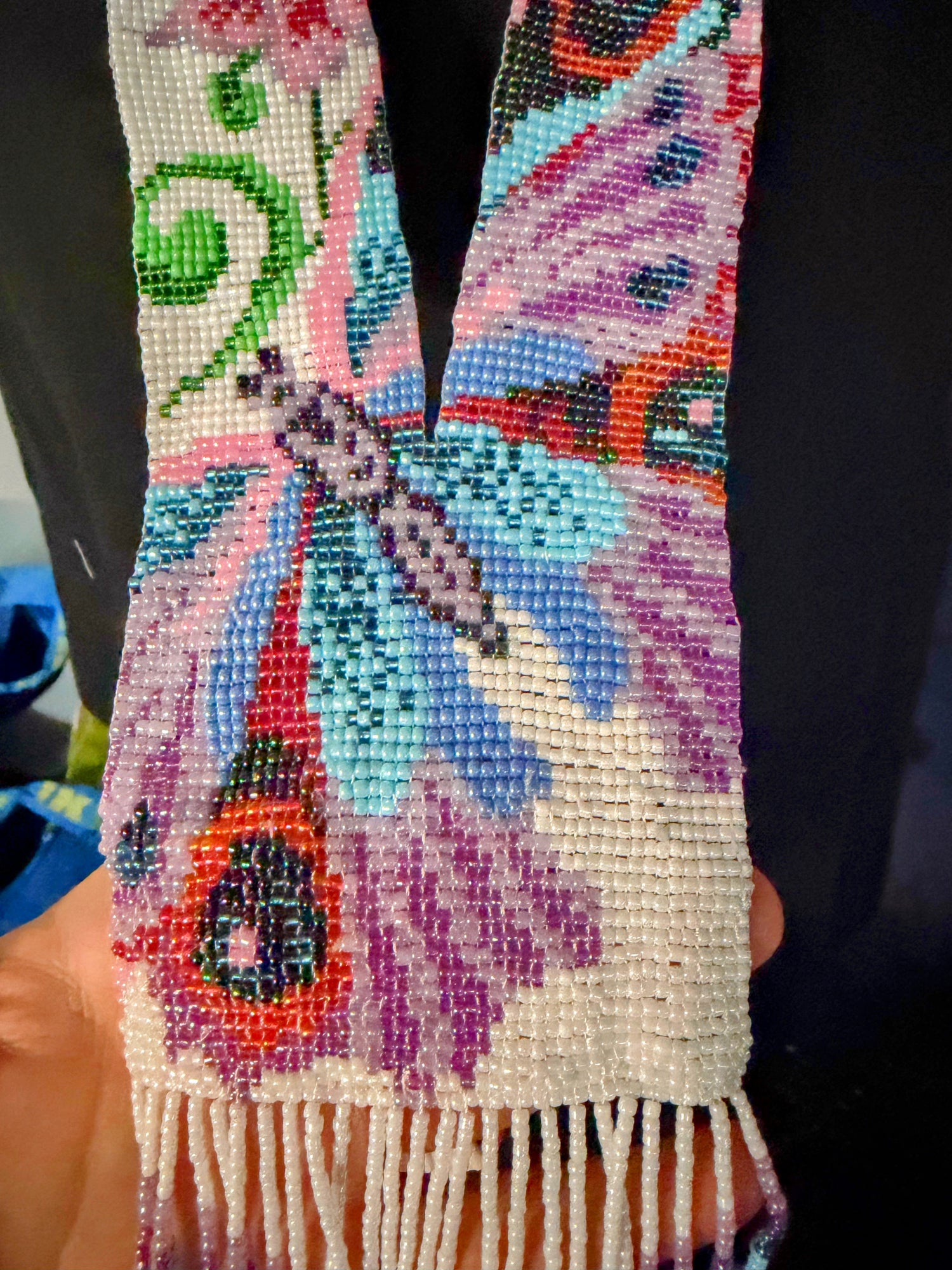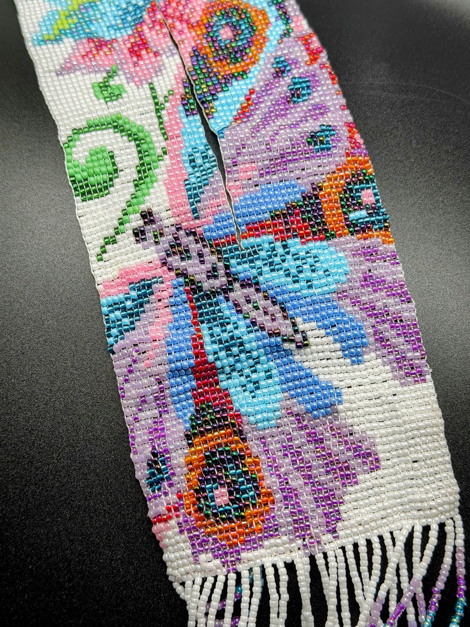 The necklace is made of high-quality Czech glass seed beads, and glass crystals.