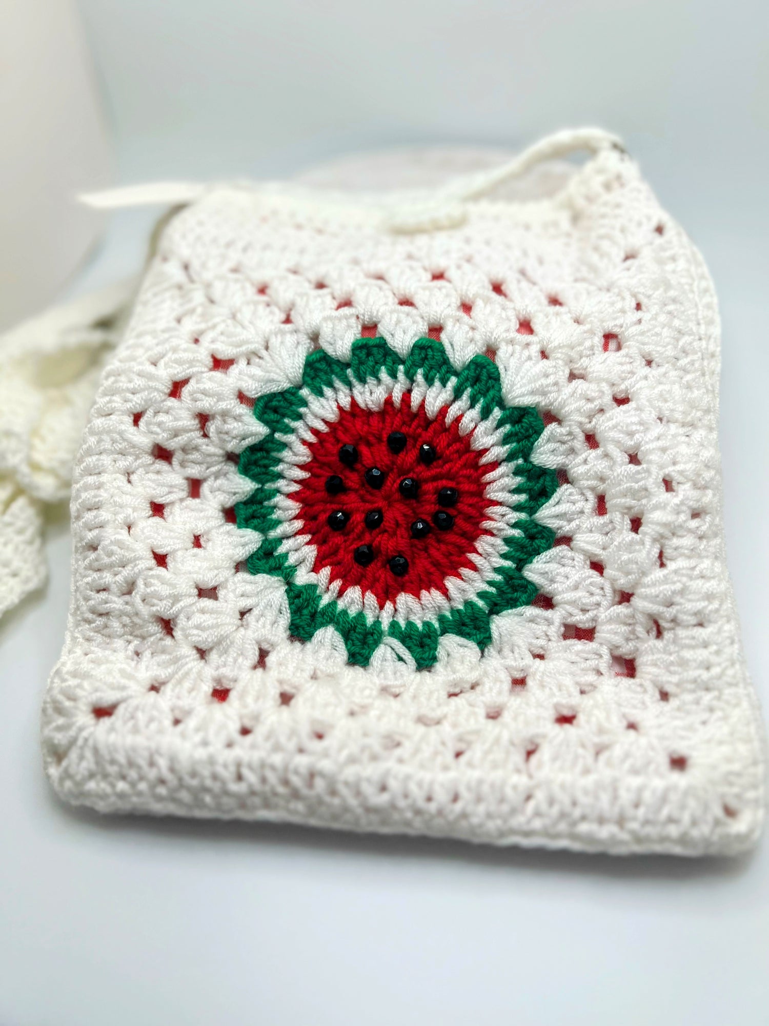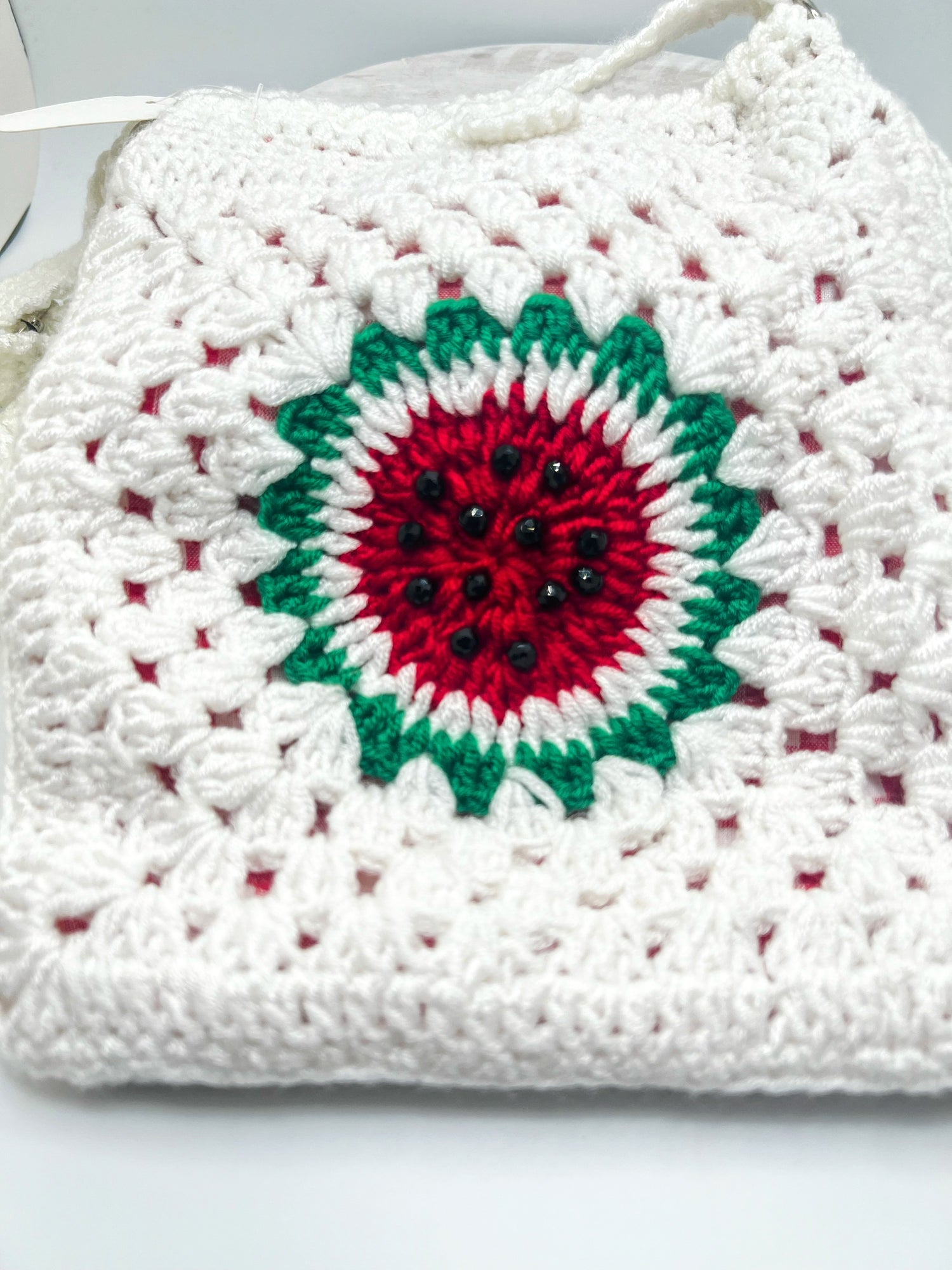 Handmade Crochet Square Bag with Watermelon Slice – Perfect for Girls & Teens