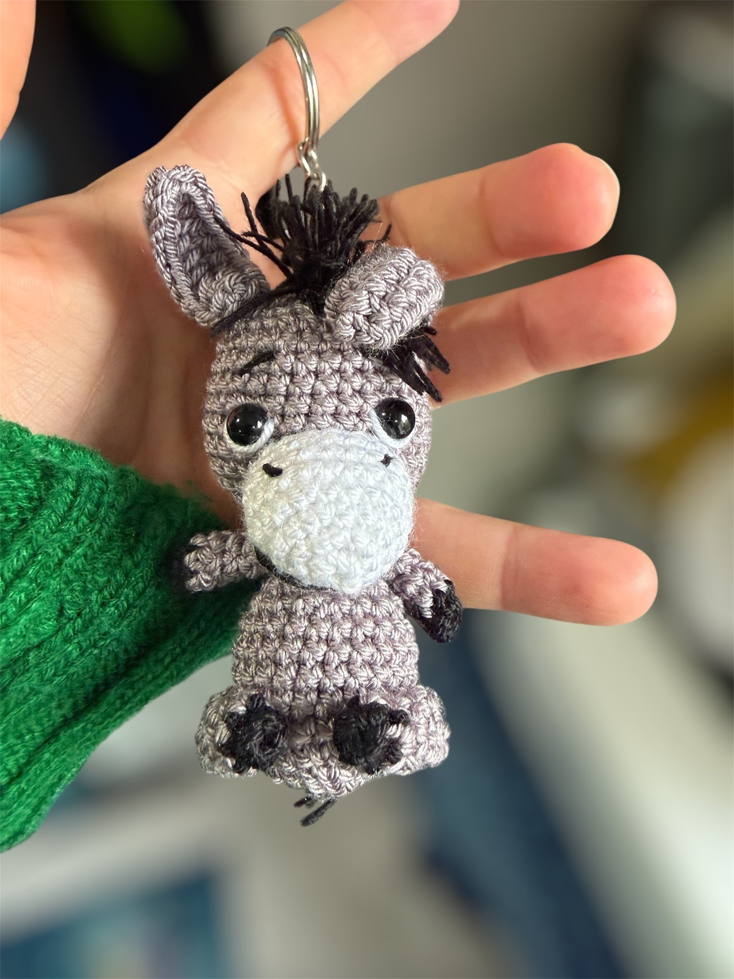 Handmade Cute Donkey Keychain – Crochet Knitted Amigurumi Toy