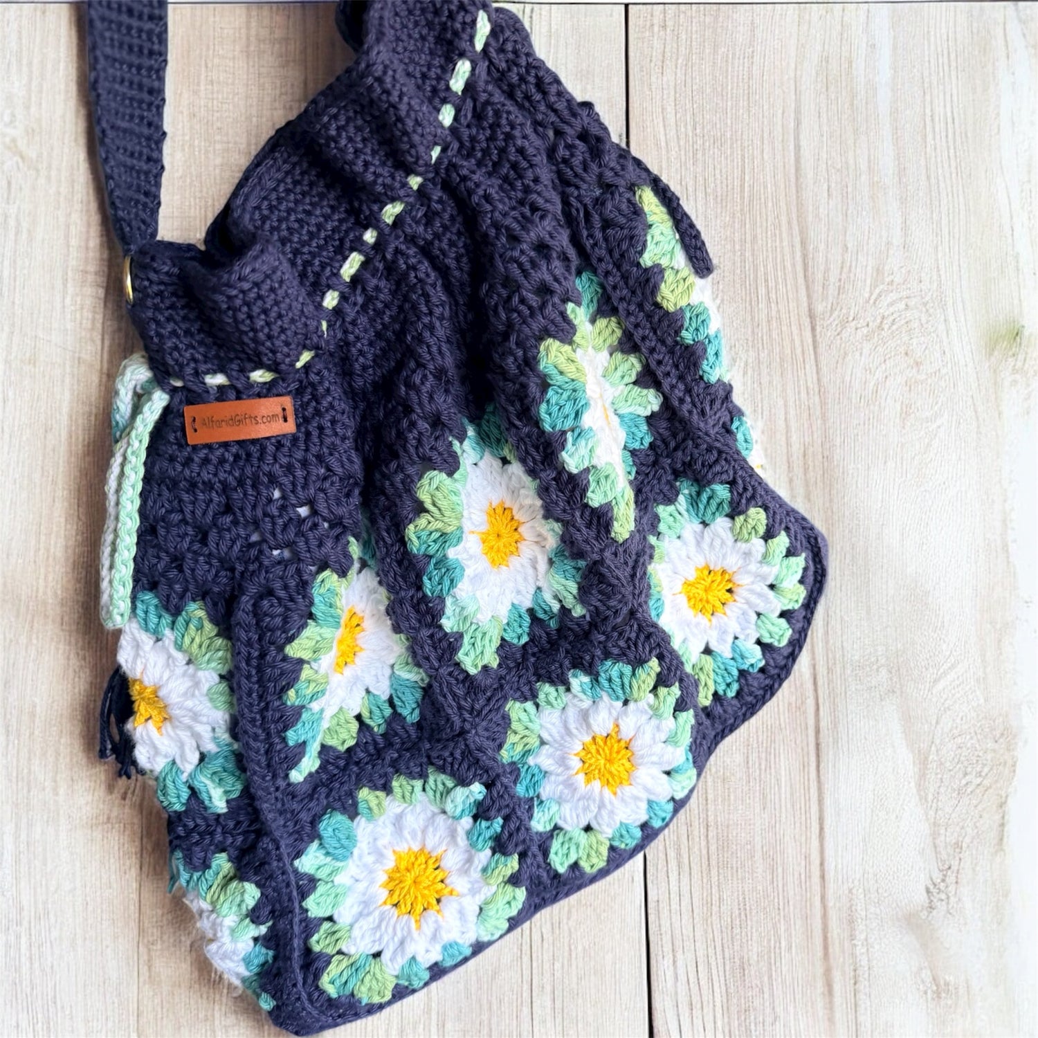 Handmade Daisy Pop Drawstring Bag – Cute & Stylish with Adjustable Strap – Stylish & Practical
