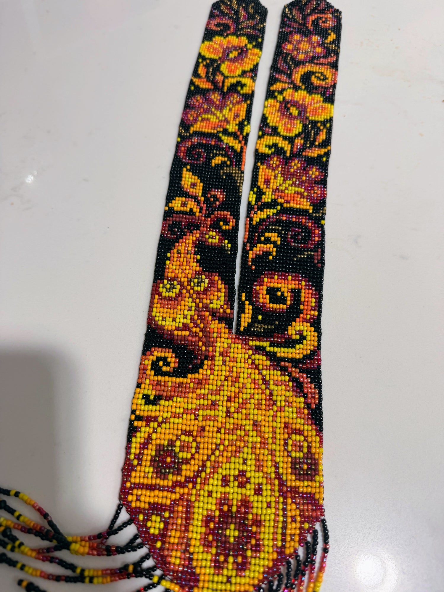 Yellow & Pink Peacock Design Loom Beaded Necklaces
